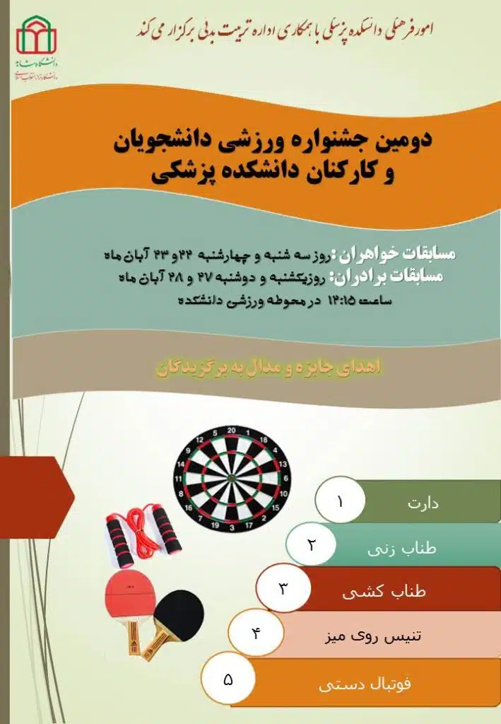 برنامه زمانی دومین جشنواره ورزشی دانشجویان و کارکنان دانشکده