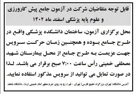 دیدگاهها برای برگزاری آزمون جامع پیش کارورزی و علوم پایه در دانشکده پزشکی بسته هستند