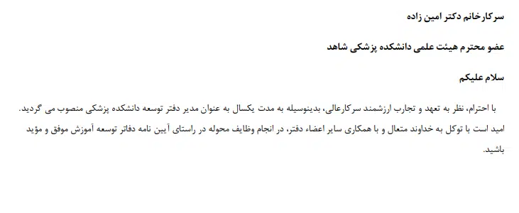 انتصاب مدیر دفتر توسعه دانشکده پزشکی